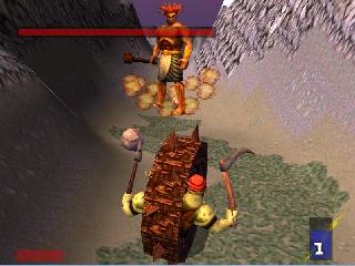 Two goblings with clubs on a big spinning wheel, rolling around smashing people, houses, cows and whatever else they find on their way.